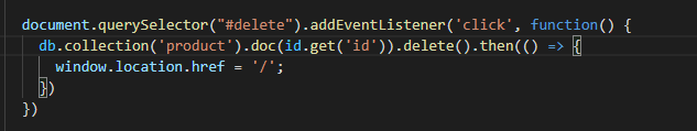코드 단 1줄로 삭제 처리를 할 수 있는데 doc() 안에 삭제할 문서의 ID를 넣어주고 delete()를 호출해 주면 삭제가 처리된다.