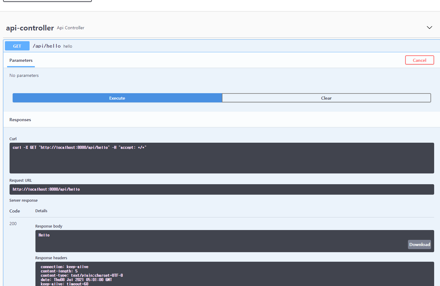 Response body에 우리가 보낸 Hello 가 정상적으로 찍히는 걸 확인할 수 있다
