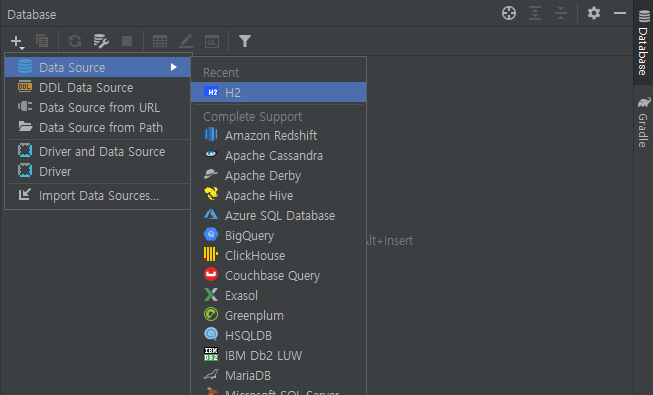 만약 IntelliJ 를 사용한다면 브라우저가 아닌 툴에서도 DB를 접속할 수 있다
